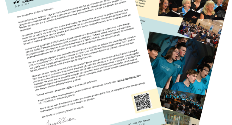 The BC Choral Federation encourages and promotes choral music throughout British Columbia. We are a non-profit association. Our members are enthusiastic singers, music educators, conductors, and organizations who share our belief that choral music is a lifelong joy, and should be accessible to everyone!